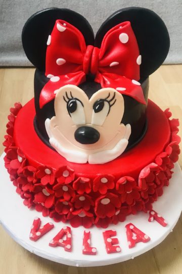 Za Valein prvi rojstni dan prikupna Minnie Mouse v dveh nadstropjih. Torta je oblečena v sladkorno maso v dveh nadstropjih z okusom maline in čokolade.