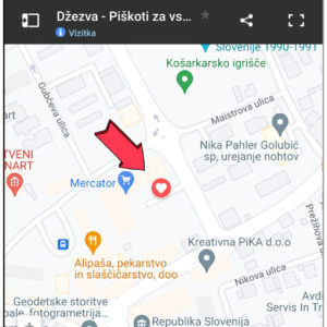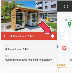 Na spodnjem zemljevidu tapnite srček in nato simbol za prikaz poti, kot prikazujeta sliki.