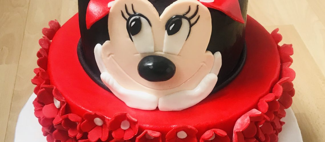 Za Valein prvi rojstni dan prikupna Minnie Mouse v dveh nadstropjih. Torta je oblečena v sladkorno maso v dveh nadstropjih z okusom maline in čokolade.